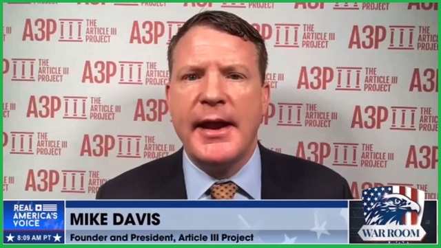Human Events & Jack Posobiec ~ (December 15, 2023) Special Guest MIKE DAVIS [see image above] warns “The Democrats are using their ‘LAWFARE’ to completely destroy the Office of the President of the United States & use new laws to completely “TIE” the hands of any future president” ? https://americasvoice.news