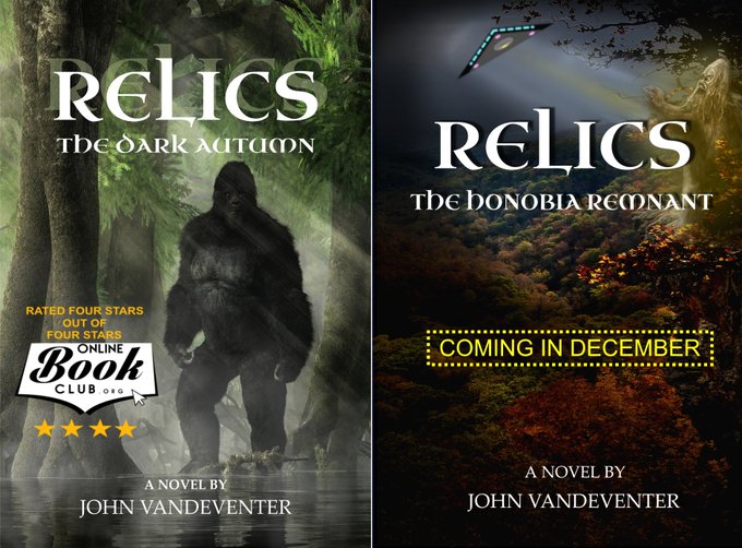 RELICS BOOKS BY JOHN VANDEVENTER Oklahoma RELICS BOOKS author John Vandeventer has 2 books out [see above] with another RELICS book in the Q http://relicsbook.com Both “RELICS The Dark Autumn” & “RELICS II The Honobia Remnant” are out in public & novels at AMAZON https://www.amazon.com On occasion author John Vandeventer has book signings & meets with his fans at the BIGFOOT MUSEUM in Talihina Oklahoma, Watching …………………