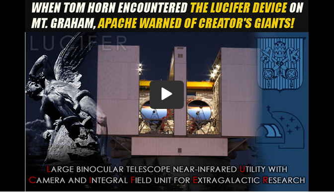 SkyWatchTV & Thomas Horn ~ (April 20, 2023) Tom Horn encountered the “Lucifer Device” [see above image] on Mount Graham, as Native American Apache Elder warned Horn of “Giants” …. Large Binocular Telescope [see above] ‘near-infrared’ utility with camera & integral field unit for ExtraGalactic Research on Mount Graham Observatory, used by the Jesuits https://rumble.com/v2i21tm-april-13-2023.html