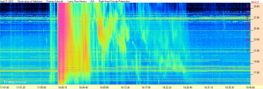 NOAA & Space Weather News Alert ~ (April 23, 2023) CME (Halo) has begun hitting Earth’s magnetic field, with severe solar storm in progress [see above image] as a G-4 Class Geomagnetic Storm (April 23) Auroras may be sighted as far south in US tonight as Texas & California. Solar Radio frequency bursts at 22 Mhz https://www.spaceweather.com