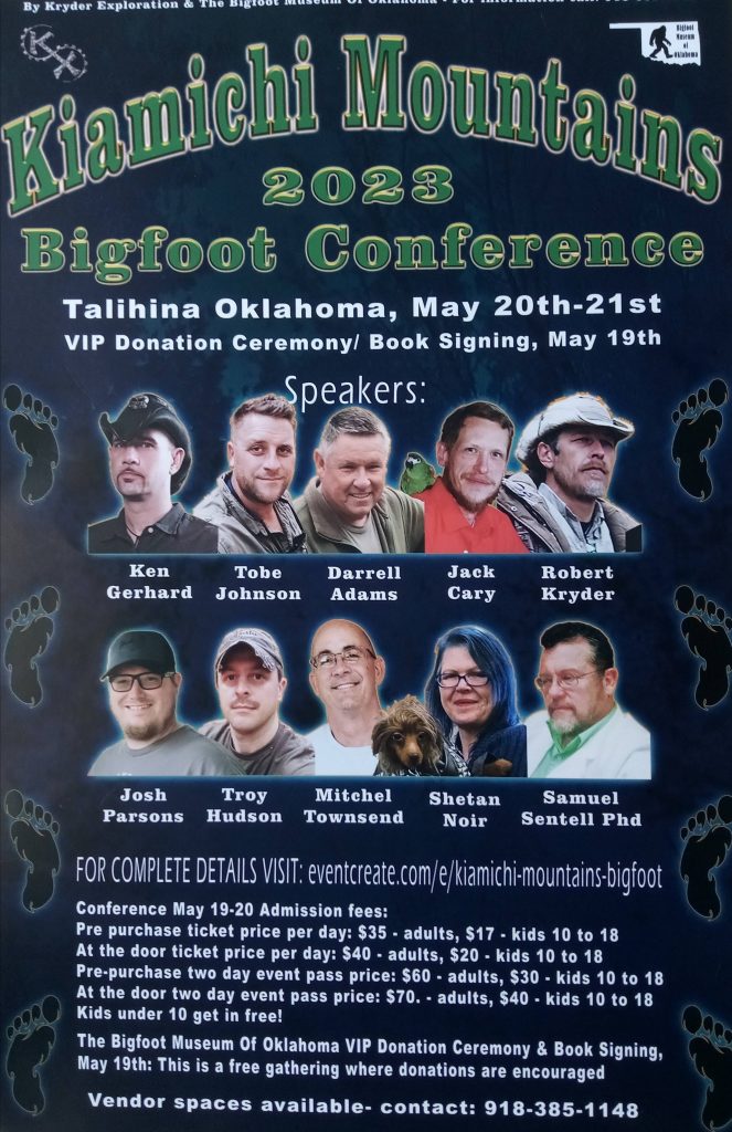 Larry Taylor Note: I stopped by the Talihina Oklahoma Bigfoot Museum (Saturday) & picked up announcement of upcoming Oklahoma Bigfoot Conference in Talihina Oklahoma in May [see above conference image] for details read or contact above image notes …