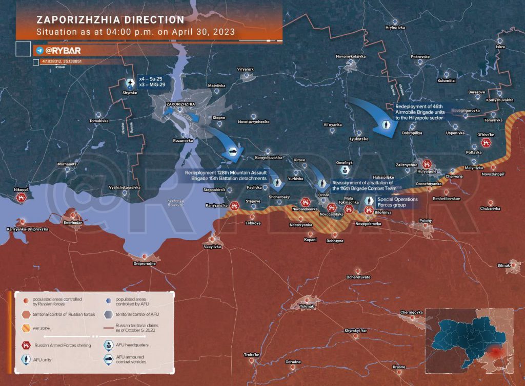 Hal Turner Covert Intel {restricted} ~ (April 30, 2023) [MAP] Ukraine Counter-Offensive planning & location becoming clear [see above image map] We are in a very “small” window of time, as Ukraine with help from US/NATO positions troops & weapons for the warned Ukraine Counter-Offensive against Russia. Counter-Offensive (announced) Zaporozhye Region with assault groups moving towards front lines. Ukraine SU-25s & Mig-29s flown into near to Zaporozhye area http://halturnerradioshow.com