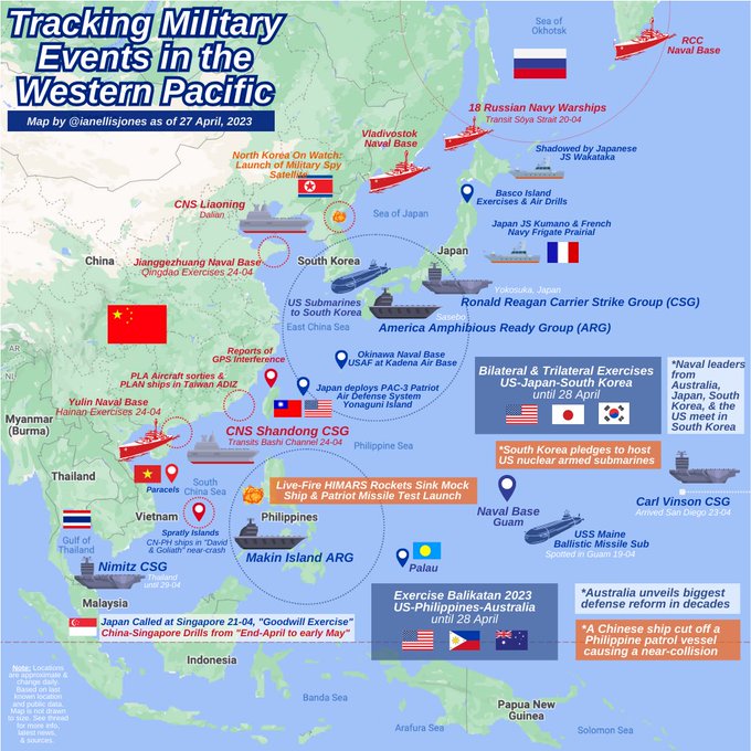 Hal Turner Covert Intel {restricted} ~ (April 28, 2023) Covert Intel – All eyes on Asia [see above image map] China-Taiwan [above] ‘Flares-Up’ hostile actions. Japan warned off Taiwan by China, not to interfere. US munitions reportedly being moved to Taiwan. MAP tracks military events in the Western Pacific Region http://halturnerradioshow.com